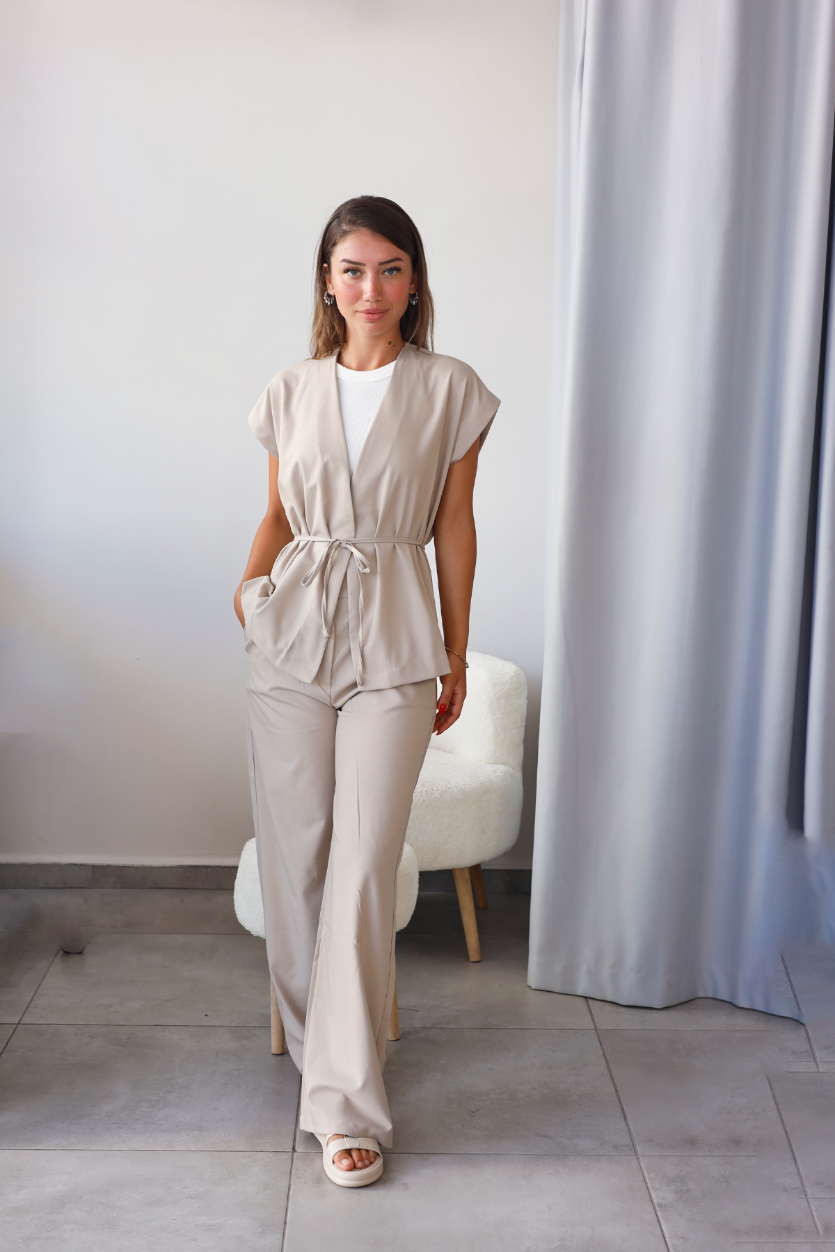 Takım üstü: Kuşak bağlamalı, kısa kollu kesim.