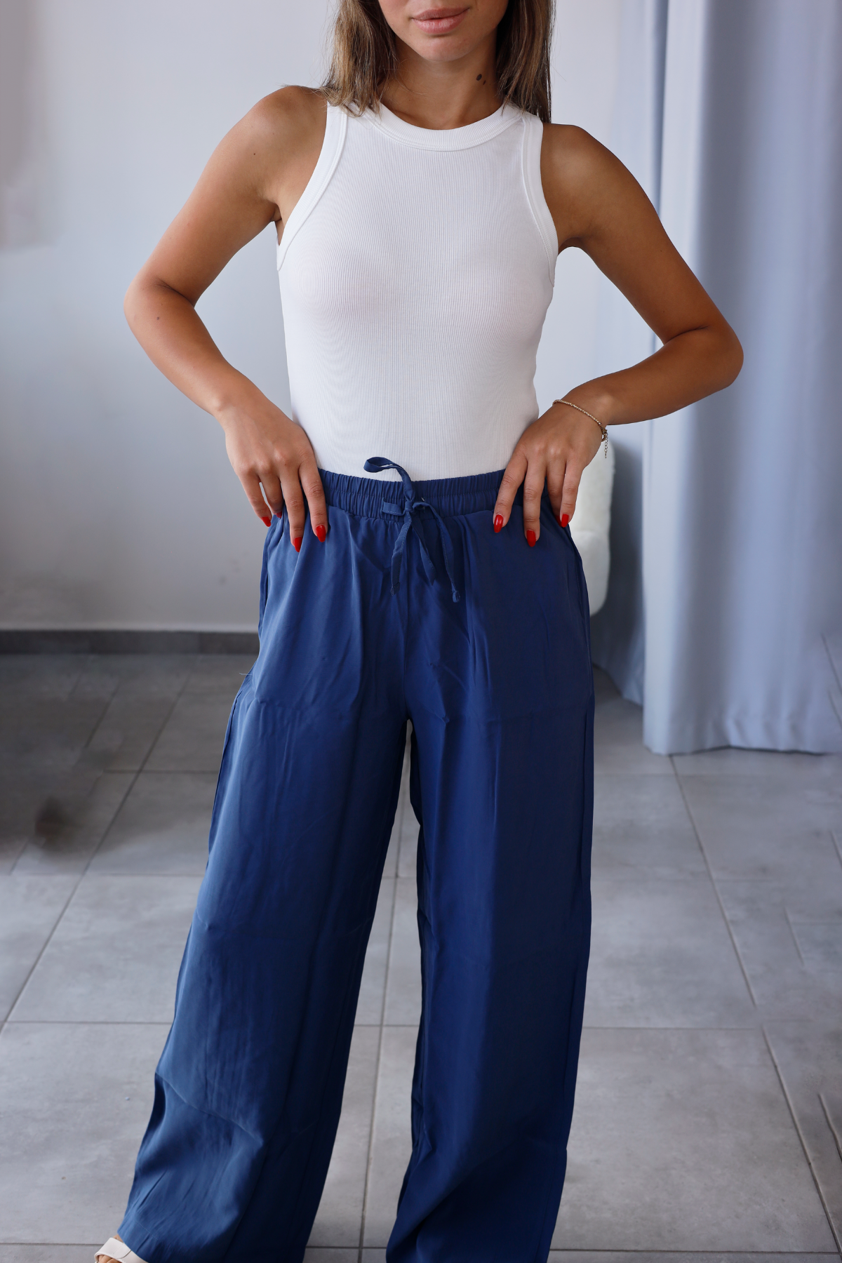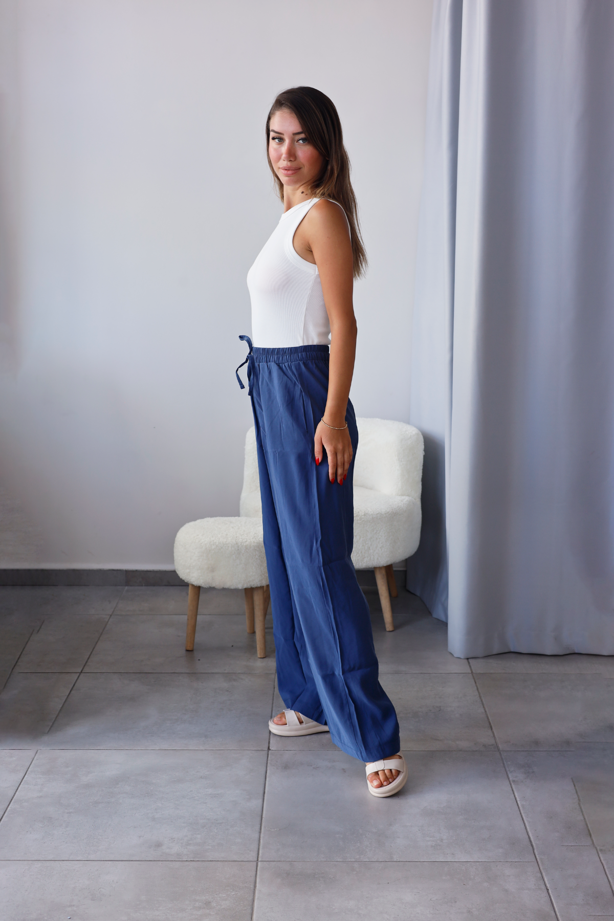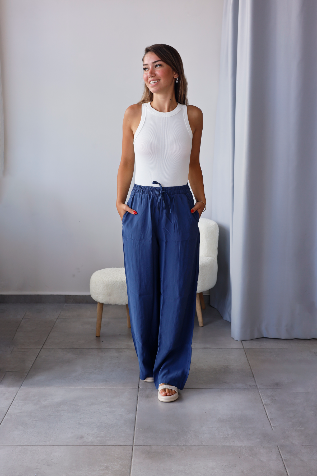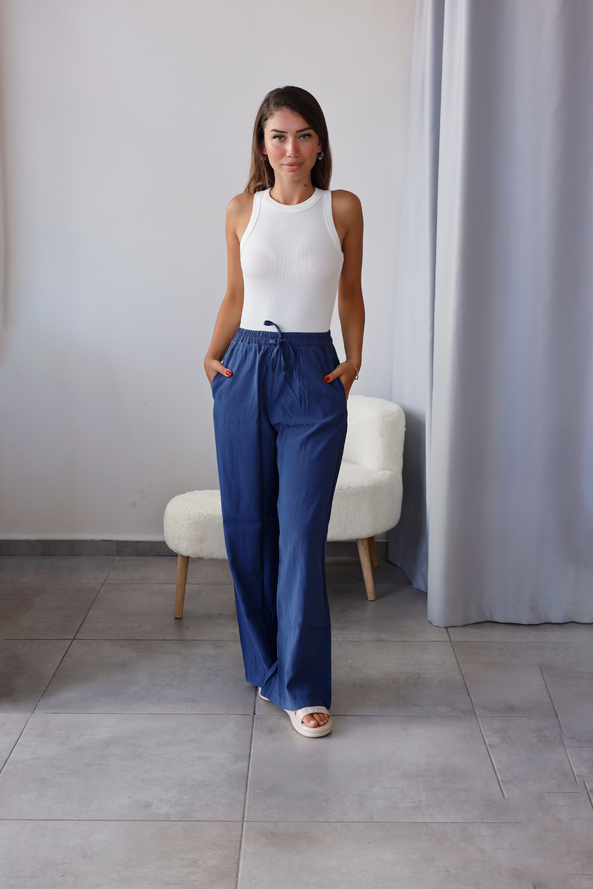 Geniş paça kesimi modern ve rahat bir siluet sunar.