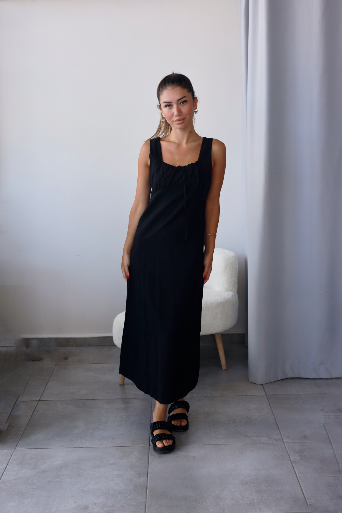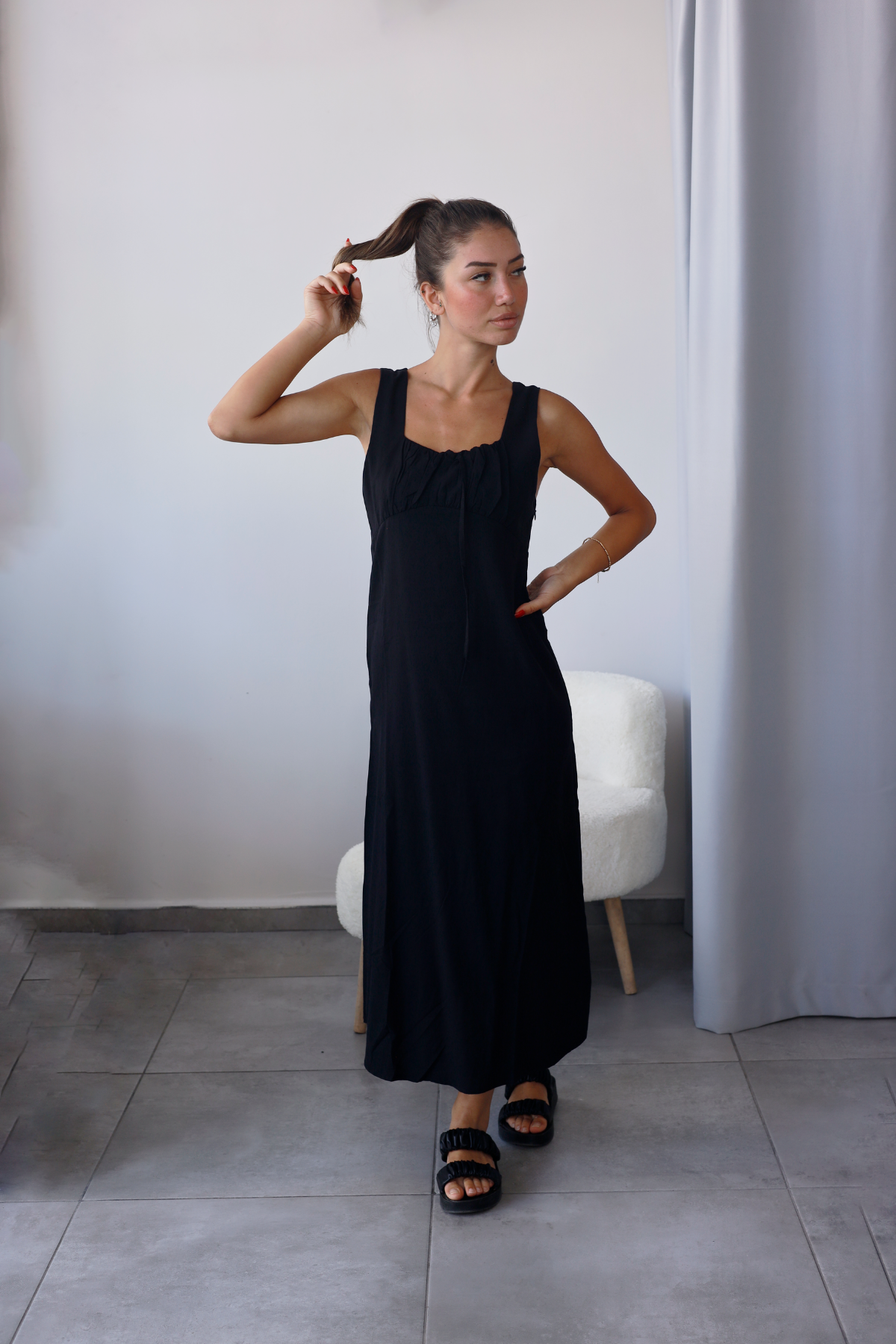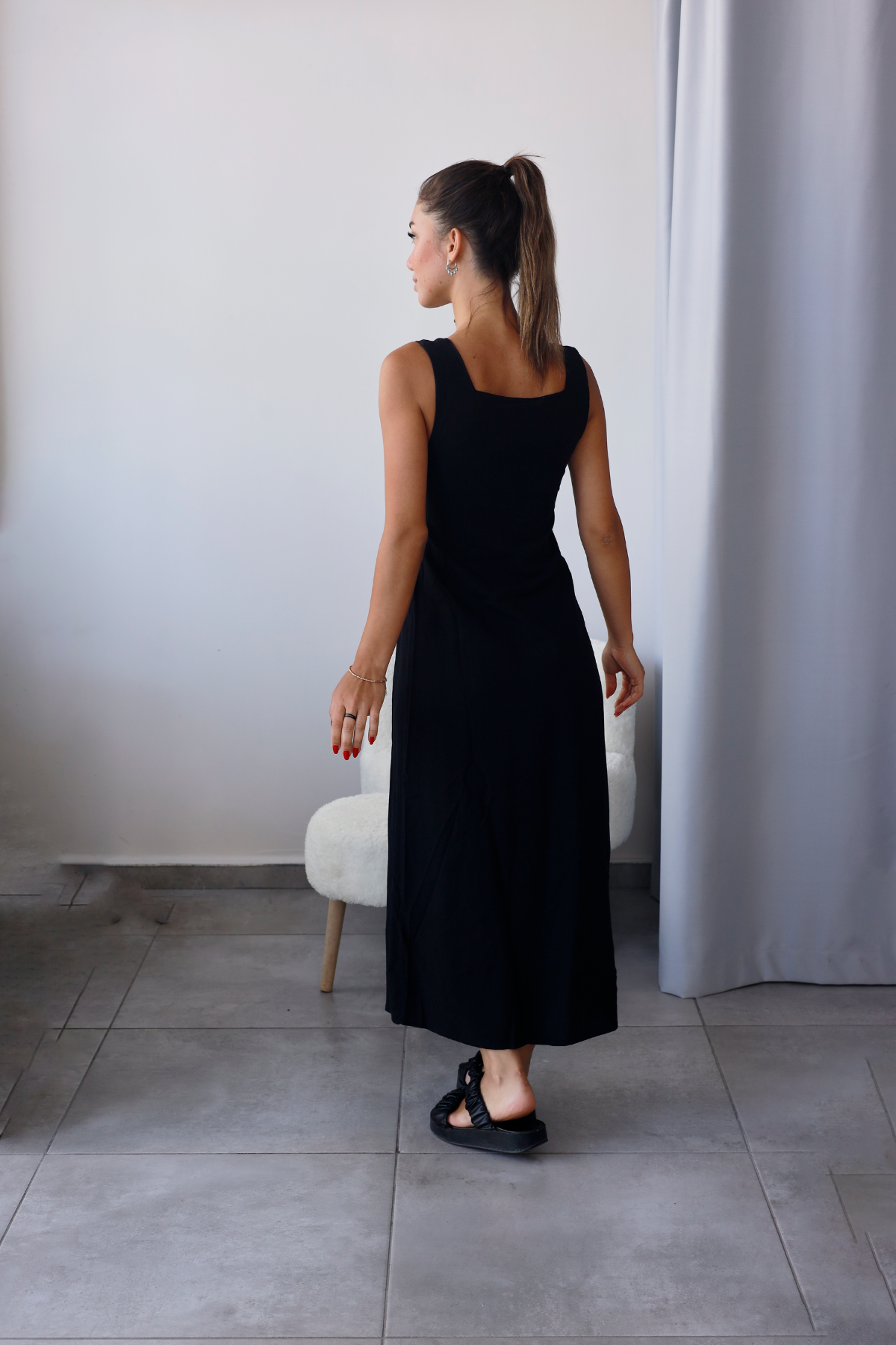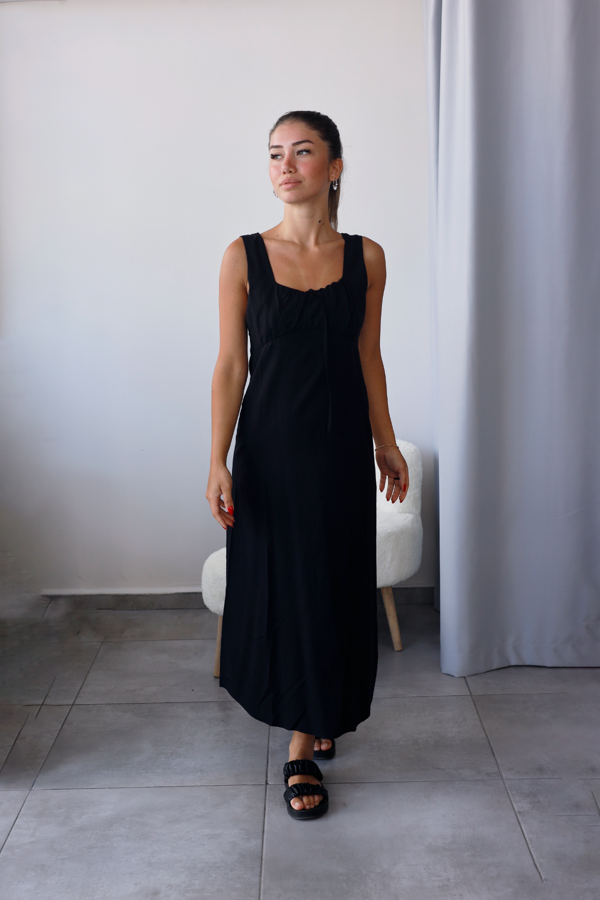 Siyah rengiyle hem sade hem iddialı bir duruş.