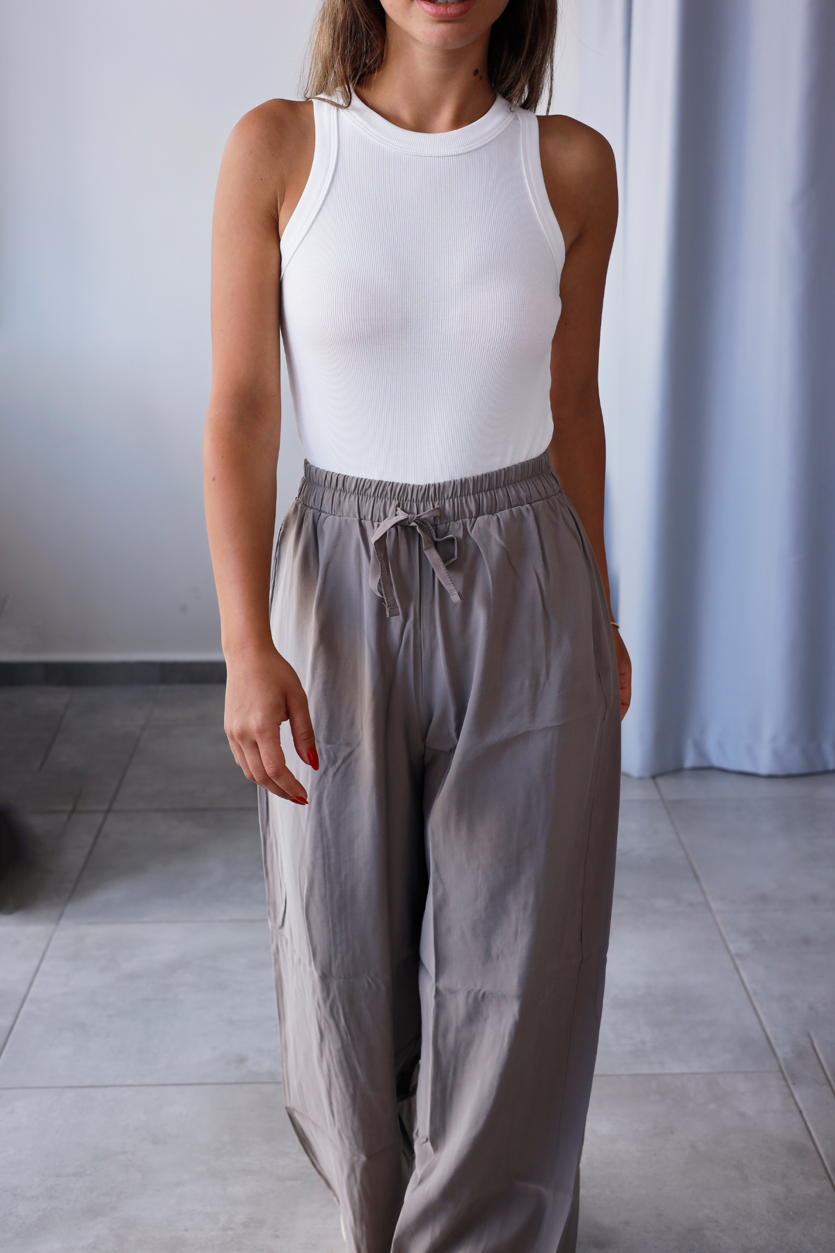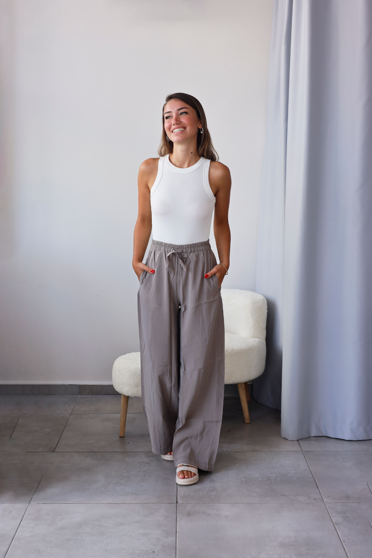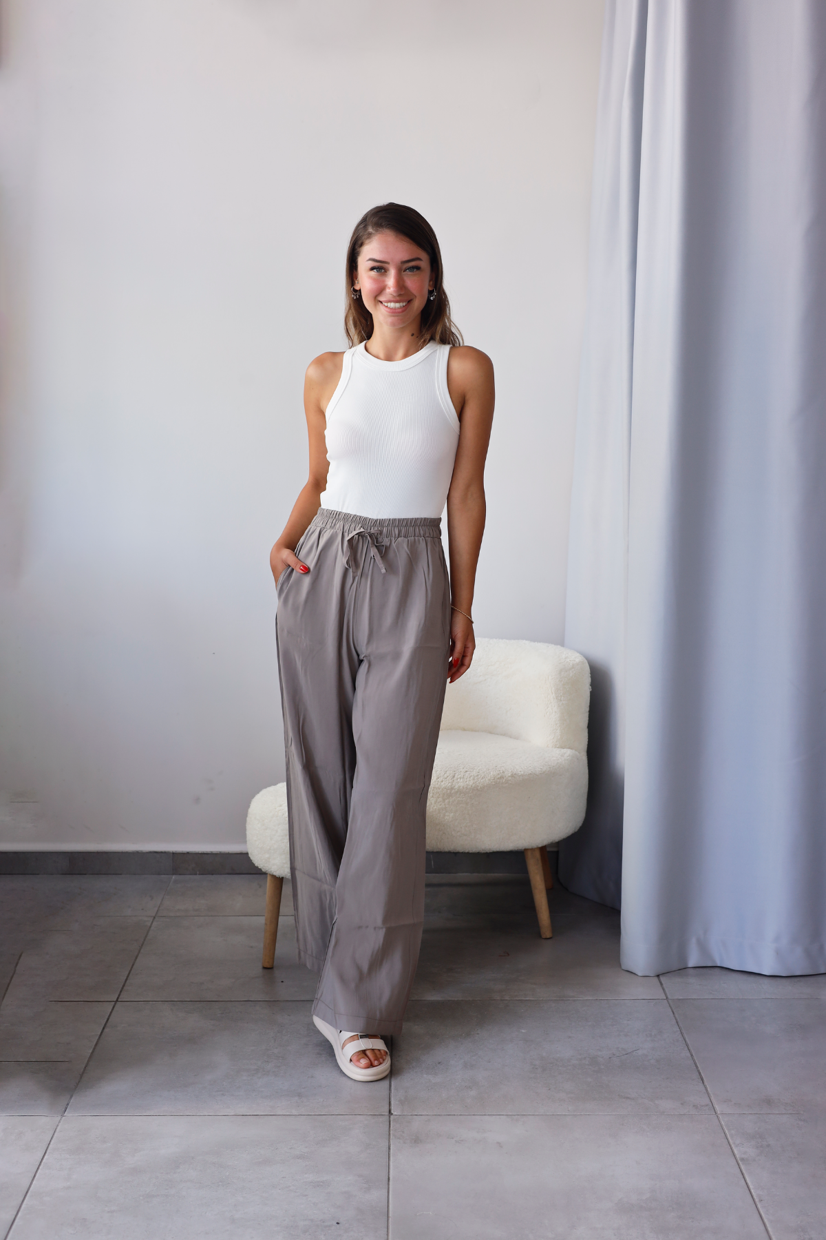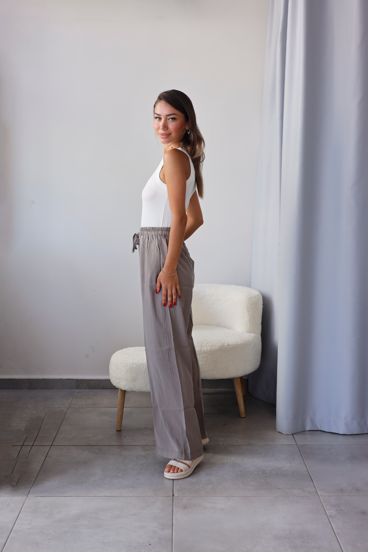 Geniş paça kesimiyle zarif ve modern bir görünüm oluşturur.