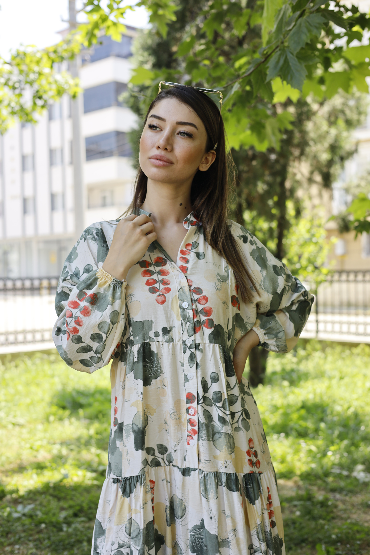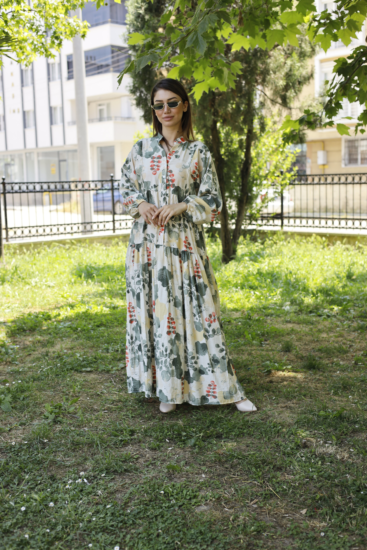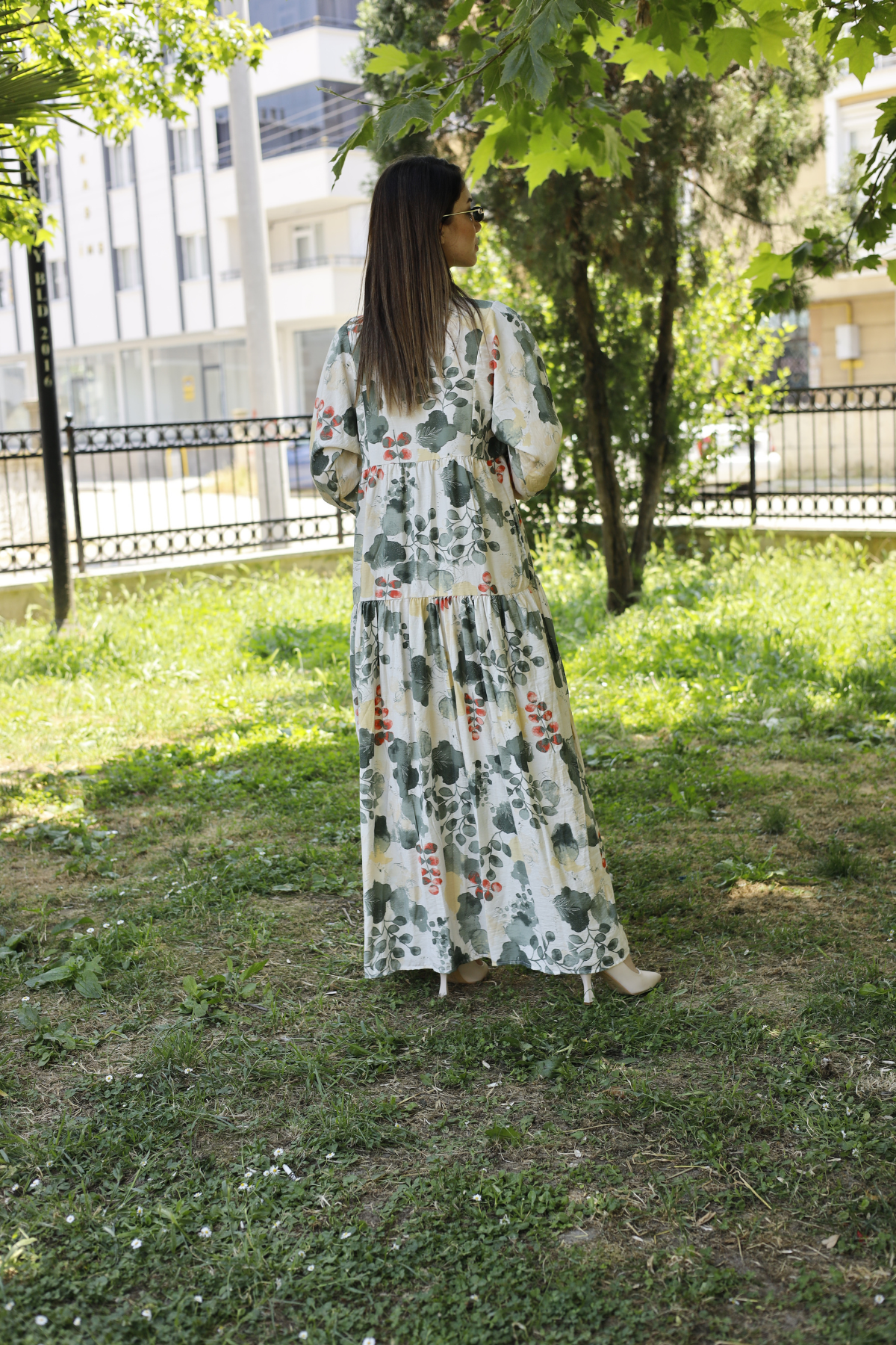 Bol kesimi ve katlı eteğiyle hareket özgürlüğü sunar.